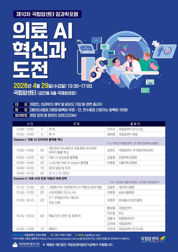 ±¹¸³¾Ï¼¾ÅÍ, 29ÀÏ ¡®ÀÇ·á AI Çõ½Å°ú µµÀü¡¯ ÁÖÁ¦·Î ¾Ï°úÇÐÆ÷·³ °³ÃÖ