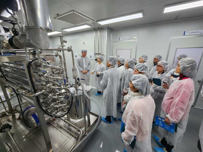 ÁøÈï¿ø ÇѾàÁ¦Á¦»ý»ê¼¾Å͸¦ ¹æ¹®ÇÑ ¿¬¼ö´ÜÀº ¿ø·á ÀÔ°íºÎÅÍ Á¦Á¶, ǰÁú°Ë»ç, Æ÷Àå¿¡ À̸£´Â GMP(¿ì¼ö ÀǾàǰ Á¦Á¶ ¹× ǰÁú°ü¸® ±âÁØ) Àü °øÁ¤À» µÑ·¯º¸¸ç Á¦Á¶ ǰÁú°ü¸® Àü¹ÝÀ» È®ÀÎÇß´Ù. ƯÈ÷ Á¦Á¶½Ã¼³ ¿î¿µ°ú ¹®¼°ü¸® ü°è, °ü¸® ±âÁØ µî¿¡ ³ôÀº °ü½ÉÀ» º¸¿´´Ù. ÁøÈï¿øÀº ±¹³» ±³À°¡¤Áø·á¡¤»ê¾÷ ±â¹ÝÀ» ÀÌÇØÇϱâ À§ÇÑ À¯°ü±â°ü ¹æ¹®µµ ¸¶·ÃÇØ ¿¬¼öÀÇ ÆøÀ» ³ÐÇû´Ù.