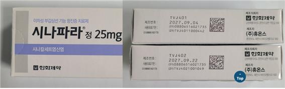 ÇÑÈÁ¦¾àÀÇ ¡®½Ã³ªÆÄ¶óÁ¤25mg¡¯ Á¦Ç°ÀÌ ½ÄǰÀǾàǰ¾ÈÀüó·ÎºÎÅÍ ¿µ¾÷ÀÚ ÀÚÁøÈ¸¼ö Æó±âÁ¶Ä¡ ¸í·ÉÀ» ¹Þ¾Ò´Ù.