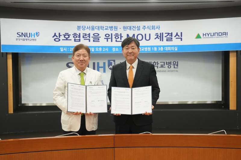 ºÐ´ç¼¿ï´ëº´¿ø(¿øÀå ¼ÛÁ¤ÇÑ)Àº Áö³ 6ÀÏ(±Ý) º´¿ø ´ëȸÀǽǿ¡¼ Çö´ë°Ç¼³°ú ÇコÄɾî Ç÷§Æû °³¹ßÀ» À§ÇÑ ¾÷¹«Çù¾à(MOU)À» ü°áÇß´Ù°í 9ÀÏ ¹àÇû´Ù. À̳¯ Çù¾à½ÄÀº ¼ÛÁ¤ÇÑ ºÐ´ç¼¿ï´ëº´¿øÀå, ±èÀ翵 Çö´ë°Ç¼³ ±â¼ú¿¬±¸¿øÀåÀ» ºñ·ÔÇÑ ÁÖ¿ä °ü°èÀÚ°¡ Âü¼®ÇÑ °¡¿îµ¥ ÁøÇàµÆ´Ù.