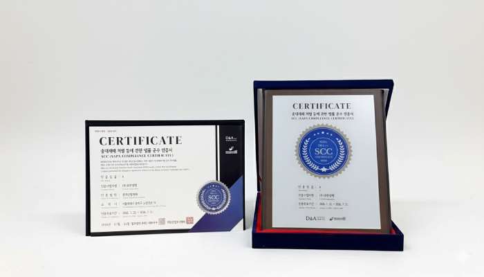 Áß´ëÀçÇØÃ³¹ú¹ý Áؼö ÀÎÁõÁ¦(SAPA Compliance Certification, SCC)´Â Áß´ëÀçÇØÃ³¹ú¹ýÀÌ ºÎ¿©Çϰí ÀÖ´Â ¹ýÀû Àǹ« »çÇ×À» ±â¾÷ÀÌ Ãæ½ÇÈ÷ ÀÌÇàÇϰí ÀÖ´ÂÁö ¹ý·ü Àü¹®°¡¿Í ¾ÈÀü Àü¹®°¡°¡ Á¤¹Ð Áø´ÜÇÏ¿© ºÎ¿©ÇÏ´Â Á¦µµ´Ù. ´ë·ú¾ÆÁÖ´Â ±¹³» ´ëÇü ·ÎÆß Áß ÃÖÃÊ·Î ÇØ´ç ÀÎÁõ ½Ã½ºÅÛÀ» µµÀÔÇÏ¿©, ±â¾÷ÀÇ Áß´ëÀçÇØ¿¹¹æ¿¡ ´ëÇÑ ¾ÈÀü °æ¿µ ¼öÁØÀ» °´°üÀûÀ¸·Î Æò°¡ÇÏ°í ½ÇÁúÀûÀÎ °³¼± ¹æÇâÀ» Á¦½ÃÇϰí ÀÖ´Ù.