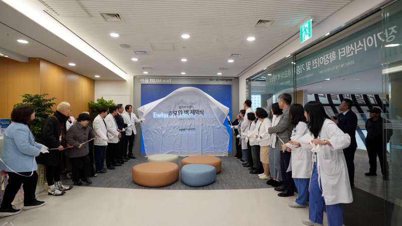 È®Àå ÀÌÀüÇÑ Àå±âÀ̽ļ¾ÅÍ ³»ºÎ¿¡´Â ±¹³» º´¿ø ÃÖÃÊ·Î ¸ÖƼºñÀüÀ» Ȱ¿ëÇÑ ¡®Ã߸ðÀÇ º®¡¯ÀÎ ÀÌÀ½¿ù(EIUM Wall - Ewha In Uniting Memory)ÀÌ ¼³Ä¡µÆ´Ù. ÀÌÀ½¿ùÀº ¿ø³» ¸íĪ °ø¸ð¸¦ ÅëÇØ ź»ýÇÑ À̸§À¸·Î ¡°ÇÑ »ç¶÷ÀÇ ³ª´®ÀÌ ¼ö¸¹Àº »ý¸íÀ¸·Î À̾îÁø´Ù¡±´Â ¸Þ½ÃÁö¸¦ ´ã¾Æ ±âÁõÀÚµéÀÇ À̸§À» µðÁöÅÐ ¿µ»óÀ¸·Î ±¸ÇöÇß´Ù. À̴뼿ﺴ¿øÀº ±âÁõÀÚ¿¡ ´ëÇÑ ¿¹¿ì¸¦ ´ÙÇÏ´Â µ¿½Ã¿¡, ¼öÇýÀÚµéÀÇ °Ç°ÇÑ ¸ð½ÀÀ» Á¶¸íÇÔÀ¸·Î½á ±àÁ¤ÀûÀÌ°í °Ç°ÇÑ Àå±âÀÌ½Ä ¹®È¸¦ È®»ê½ÃŲ´Ù´Â °èȹÀÌ´Ù.