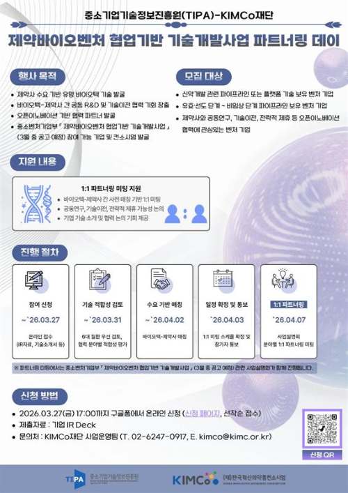 À̹ø Çà»ç´Â Á¦¾à»ç ¼ö¿ä ±â¹ÝÀÇ À¯¸Á ¹ÙÀÌ¿ÀÅØ ±â¼úÀ» ¹ß±¼Çϰí, °øµ¿¿¬±¸ ¹× ±â¼úÀÌÀü, Àü·«Àû Á¦ÈÞ µî ¿ÀÇ À̳뺣ÀÌ¼Ç Çù·ÂÀ» ÃËÁøÇϱâ À§ÇØ ¸¶·ÃµÆ´Ù. ƯÈ÷ Áß¼Òº¥Ã³±â¾÷ºÎÀÇ ¡®Á¦¾à¹ÙÀÌ¿Àº¥Ã³ Çù¾÷±â¹Ý ±â¼ú°³¹ß»ç¾÷(3¿ù Áß °ø°í ¿¹Á¤)¡¯°ú ¿¬°èÇØ, ÇâÈÄ ÄÁ¼Ò½Ã¾ö ±¸¼º ¹× »ç¾÷ Âü¿©·Î À̾îÁú ¼ö ÀÖ´Â ½ÇÁúÀûÀÎ Çù·Â ±âȸ¸¦ Á¦°øÇÏ´Â °ÍÀÌ Æ¯Â¡ÀÌ´Ù.