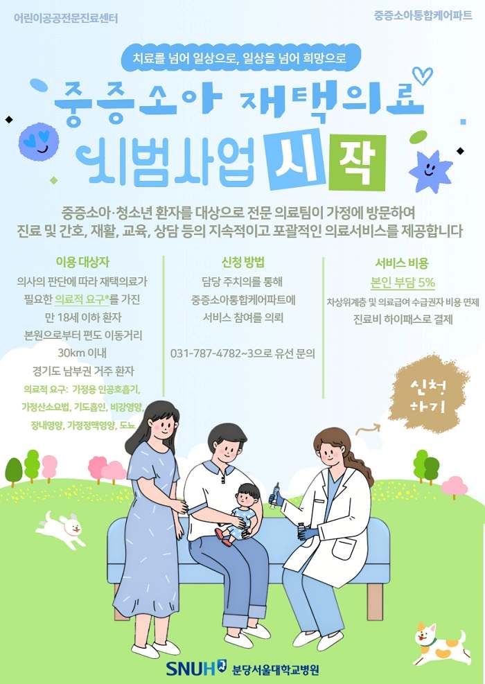 ºÐ´ç¼¿ï´ëº´¿ø ¾î¸°À̰ø°øÀü¹®Áø·á¼¾ÅͰ¡ 4¿ù 1ÀϺÎÅÍ ÁßÁõ ¼Ò¾ÆÈ¯ÀÚ¸¦ ´ë»óÀ¸·Î ÇÏ´Â ¡®ÁßÁõ¼Ò¾Æ ÀçÅÃÀÇ·á ½Ã¹ü»ç¾÷¡¯À» º»°Ý ½ÃÀÛÇß´Ù°í 14ÀÏ ¹àÇû´Ù. À̷νá ÀÔ¡¤Åð¿øÀ» ¹Ýº¹ÇØ¾ß Ç߰ųª º´¿øÀ» Á÷Á¢ ¹æ¹®Çϱ⠾î·Á¿ü´ø ÁßÁõ ¼Ò¾ÆÈ¯ÀÚµéÀÌ Áý¿¡¼µµ Àü¹®ÀûÀÎ ÀÇ·á ¼ºñ½º¸¦ ¹ÞÀ» ¼ö ÀÖ°Ô µÆ´Ù.