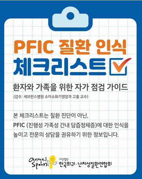 ¹ÙÀÌ¿ÀÁ¦¾à»ç ÀÔ¼¾ÄÚ¸®¾Æ (´ëÇ¥ ¾ç¹Ì¼±)¿Í (»ç)Çѱ¹Èñ±Í¡¤³Ä¡¼ºÁúȯ¿¬ÇÕȸ(ȸÀå À¯ÁöÇö, ÀÌÇÏ ¿¬ÇÕȸ)°¡ Èñ±Í °£ Áúȯ PFIC(ÁøÇ༺ °¡Á·¼º °£³» ´ãÁóÁ¤Ã¼Áõ)ÀÇ Á¶±â ÀνÄÀ» µ½±â À§ÇÑ ¡®PFIC Áúȯ ÀÎ½Ä Ã¼Å©¸®½ºÆ®¡¯¸¦ °øµ¿ °³¹ßÇØ 27ÀÏ °ø°³Çß´Ù. ÇØ´ç ÀÚ·á´Â ¼¼ºê¶õ½ºº´¿ø ¼Ò¾Æ¼Òȱ⿵¾ç°ú °íÈ« ±³¼öÀÇ °¨¼ö¸¦ °ÅÃÄ ÀÇÇÐÀû Á¤È®¼º°ú ÀÓ»óÀû ½Å·Ú¼ºÀ» È®º¸Çß´Ù.