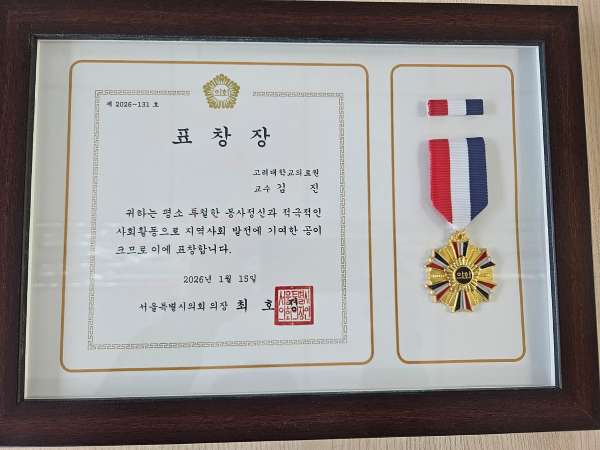 ¡ã ¼¿ï½ÃÀÇȸ ÀÇÀå ǥâÀ» ¼ö»óÇÑ °í·Á´ëÀÇ·á¿ø ±èÁø »çȸ°øÇå»ç¾÷½ÇÀå