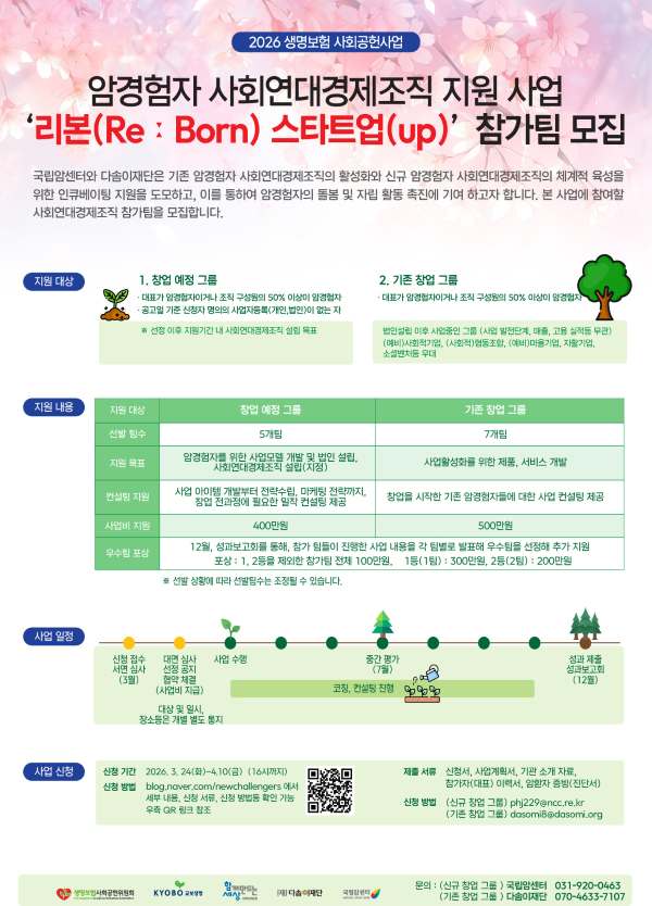 ±¹¸³¾Ï¼¾ÅÍ-(Àç)´Ù¼ØÀÌÀç´Ü, ¾Ï°æÇèÀÚ °æÁ¦È°µ¿ Áö¿ø º»°Ý ÃßÁø