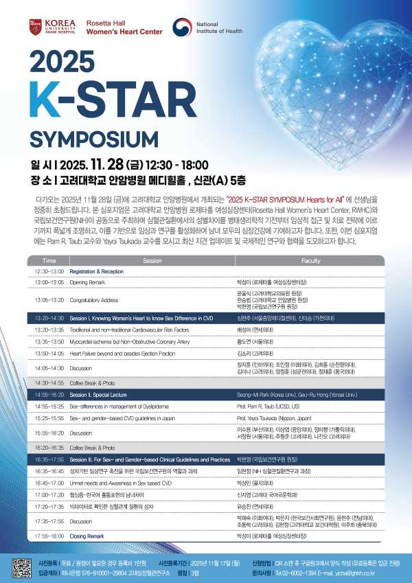 °í·Á´ëÇб³ ¾È¾Ïº´¿ø, 28ÀÏ ¡®2025 K-STAR SYMPOSIUM¡¯ °³ÃÖ
