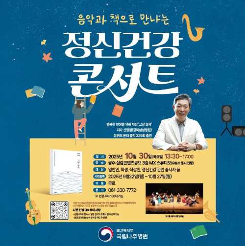 ±¹¸³³ªÁÖº´¿ø(¿øÀå Á÷¹«´ë¸® ½Ã¿µÈ)Àº ¿À´Â 30ÀÏ ±¤ÁÖ ½Ç°¨ÄÜÅÙÃ÷Å¥ºê¿¡¼ ¡®À½¾Ç°ú Ã¥À¸·Î ¸¸³ª´Â Á¤½Å°Ç° ÄܼƮ¡¯¸¦ °³ÃÖÇÑ´Ù°í 13ÀÏ ¹àÇû´Ù.