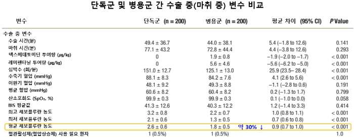 À̹ø ¿¬±¸´Â 2020³âºÎÅÍ 2023³â±îÁö »ýÈÄ 2¼¼ ¹Ì¸¸ ´Üȸ ¼ö¼ú ȯÀÚ 400¸íÀ» ´ë»óÀ¸·Î ½ÃÇàµÈ ÀüÇâÀû¡¤ÀÌÁ߸Ͱˡ¤¹«ÀÛÀ§ ÀÓ»ó½ÃÇèÀÌ´Ù. ¾à 2½Ã°£ À̳»ÀÇ ÂªÀº ¼ö¼ú¸¸À» ´ë»óÀ¸·Î ÇßÀ¸¸ç, Âü¿© ȯÀÚ´Â ¹«ÀÛÀ§·Î µÎ ±×·ì¿¡ ¹èÁ¤µÆ´Ù. ÇÑ ±×·ìÀº ÈíÀÔ¸¶ÃëÁ¦(¼¼º¸Ç÷ç¶õ)¸¸ »ç¿ëÇÑ ¡®´Üµ¶±º¡¯, ´Ù¸¥ ±×·ìÀº °°Àº ¼¼º¸Ç÷ç¶õ¿¡ º¸Á¶ ¾àÁ¦(µ¦½º¸Þµ¥Åä¹Ìµò, ·¹¹ÌÆæÅ¸´Ò)¸¦ ÇÔ²² Åõ¿©ÇÑ ¡®º´¿ë±º¡¯À̾ú´Ù.