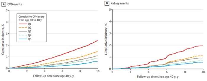 ¡ã 40¼¼ ÀÌÈÄ 10¿© ³â°£ÀÇ ÃßÀû °üÂû °á°ú, 30´ë¿¡ ´©ÀûµÈ ½ÉÇ÷°ü °Ç° ¼öÁØÀÌ »óÀ§ 20%ÀÎ Áý´ÜÀº ÇÏÀ§ 20%ÀÎ Áý´Ü¿¡ ºñÇØ ½É³úÇ÷°üÁúȯ°ú ½ÅÀåÁúȯ ¹ß»ý À§ÇèÀÌ °¢°¢ 73%, 75% ³·Àº °ÍÀ¸·Î ³ªÅ¸³µ´Ù.
