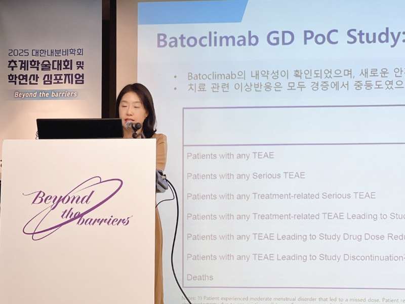ƯÈ÷ Åõ¿© ¿Ï·á ÈÄ¿¡µµ ÁúȯÀÇ ÁÖ¿ä ¿øÀÎÀ¸·Î ¾Ë·ÁÁø ÀÚ°¡Ç×ü(TRAb)°¡ °¨¼ÒµÈ ¼öÁØÀ¸·Î À¯ÁöµÅ ±âÁ¸ Ä¡·áÁ¦·Î ÃæºÐÇÑ È¿°ú¸¦ º¸Áö ¸øÇß´ø ȯÀڵ鿡°Ô »õ·Î¿î ±âÁØÀÌ µÉ ¼ö ÀÖ´Â Ä¡·áÁ¦·Î ÁÖ¸ñ¹Þ¾Ò´Ù. ÀÓ»ó ±â°£ Áß »õ·Ó°Ô º¸°íµÈ ÀÌ»ó¹ÝÀÀÀº ¾ø¾ú´Ù.