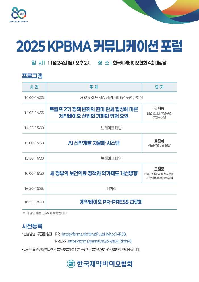 Çѱ¹Á¦¾à¹ÙÀÌ¿ÀÇùȸ(ȸÀå ³ë¿¬È«)´Â ¿À´Â 24ÀÏ ¿ÀÈÄ 2½Ã Çùȸ 4Ãþ ´ë°´ç¿¡¼ ¡®2025 KPBMA Ä¿¹Â´ÏÄÉÀÌ¼Ç Æ÷·³¡¯À» °³ÃÖÇÑ´Ù°í 11ÀÏ ¹àÇû´Ù.