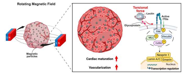¿¬±¸ÆÀÀº ÀÚ¼º ³ª³ëÀÔÀÚ¸¦ ½ÉÀå ¿À°¡³ëÀ̵忡 Àû¿ëÇØ ¹Ì¼¼ÇÑ È¸Àü ÀÚ±ØÀ» °¡ÇÏ´Â »õ·Î¿î ¹æ½ÄÀÇ ±â°èÀû ÀÚ±Ø Ç÷§ÆûÀ» ±¸ÃàÇß´Ù. À̸¦ ÅëÇØ ¡ã½É±Ù¼¼Æ÷ ¼öÃà ´Ü¹éÁú Á¤·Ä ¡ã¼¼Æ÷ °£ Àü±âÀû ½ÅÈ£Àü´ÞÀÇ ÇÙ½É ´Ü¹éÁúÀÎ Ä¿³Ø½Å43(Cx43) ¹ßÇö Áõ°¡ ¡ãÇ÷°ü Çü¼º °ü·Ã À¯ÀüÀÚÀÎ PECAM1, VWF ¹ßÇö ÃËÁø µî ±âÁ¸ ¿À°¡³ëÀ̵åÀÇ ÇѰè·Î ÁöÀûµÅ ¿Â Á¶Á÷ ¼º¼÷µµÀÇ È¹±âÀû Çâ»óÀ» À̲ø¾ú´Ù.