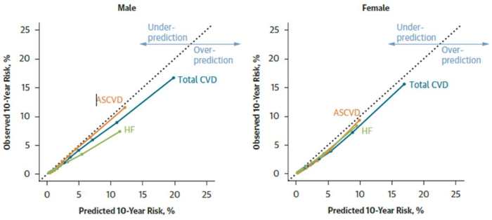 ¹Ý¸é, 2013³â °³¹ßµÅ Áö³ 10¿©³â°£ ¹Ì±¹¿¡¼ »ç¿ëµÆ´ø ¡®ÅëÇÕ ÄÚȣƮ ¸ðÇü(Pooled Cohort Equations)¡¯Àº Á×»ó°æÈ¼º ½É³úÇ÷°üÁúȯ¿¡ ´ëÇØ º¸Á¤ ±â¿ï±â°¡ ³²ÀÚ 0.46, ¿©ÀÚ 0.50À¸·Î ´ëÆø °ú´ë ¿¹ÃøÇÏ´Â °æÇâÀ» º¸¿´´Ù.