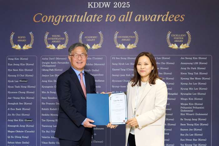 ¡ã °Ç¾ç´ëÇб³º´¿ø Çã±ÔÂù ±³¼ö(ÁÂ)¿Í °Ç±¹´ëÇб³º´¿ø ¼ÛÁÖÇý ±³¼ö(¿ì)°¡ 'Excellent Poster Award'¸¦ ¼ö»óÇϰí ÀÖ´Ù.