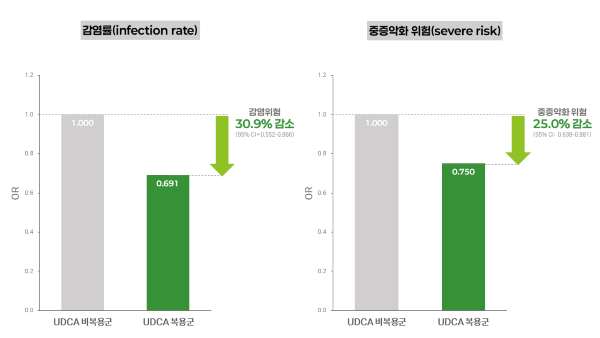 ¡ã UDCA, COVID19 °¨¿° À§Çè, ÁßÁõ ¾ÇÈ À§Çè °¨¼Ò