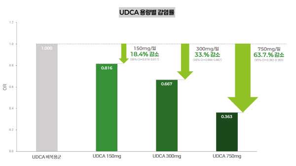 °Ç¾ç´ëÇб³º´¿ø Çã±ÔÂù ±³¼ö(¿¬±¸Ã¥ÀÓÀÚ) ¿¬±¸ÆÀÀÌ ÁÖµµÇÑ À̹ø ¿¬±¸¿¡¼, UDCA º¹¿ë±ºÀº ºñº¹¿ë±º ´ëºñ ¡ãCOVID-19 °¨¿° À§Çè 31% °¨¼Ò, ¡ãÁßÁõ ¾ÇÈ À§Çè 25% °¨¼Ò, ¡ãÀΰøÈ£Èí±â »ç¿ë À§Çè 25% °¨¼ÒÇÏ´Â °á°ú¸¦ º¸¿´´Ù.
