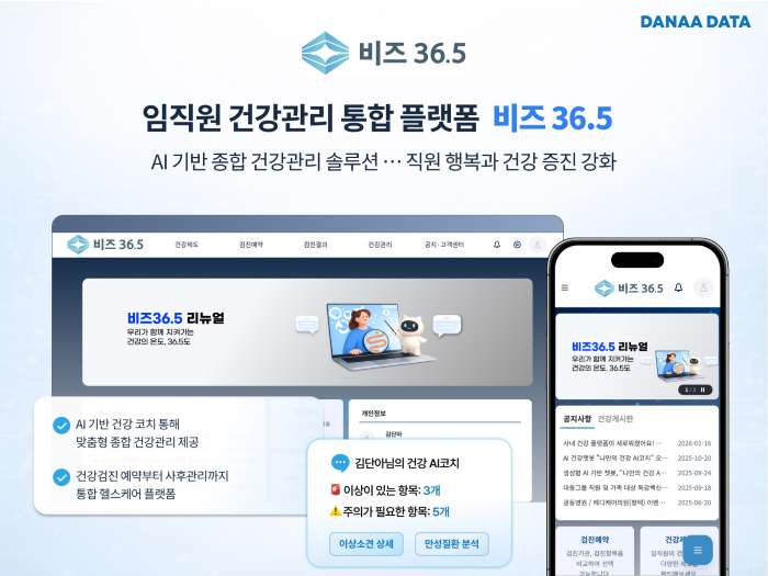 ºñÁî 36.5´Â ´ë¿õÁ¦¾à°ú ÇコÄÉ¾î Æ¯È IT±â¾÷ÀÎ ´Ù³ª¾Æµ¥ÀÌÅͰ¡ °øµ¿ °³¹ßÇÑ ÀÓÁ÷¿ø °Ç°°ü¸® Ç÷§ÆûÀ¸·Î, ±âÁ¸ °Ç°°ËÁø ¿¹¾à ¼ºñ½º¿¡ °ËÁø µ¥ÀÌÅÍ ±â¹ÝÀÇ AI ¼Ö·ç¼Ç '³ª¸¸ÀÇ °Ç° AIÄÚÄ¡'¸¦ ÅëÇÕÇØ ¸®´º¾óÇß´Ù. ÀÌ´Â ¿¬ 1ȸ °Ç°°ËÁø °ü¸®»Ó¸¸ ¾Æ´Ï¶ó 365ÀÏ ÀÏ»ó ¼Ó °Ç°°ü¸®¸¦ Áö¿øÇϸç ÇöÀç ´ë¿õ±×·ì Àü ÀÓÁ÷¿ø¿¡°Ô Á¦°øµÇ°í ÀÖ´Ù.