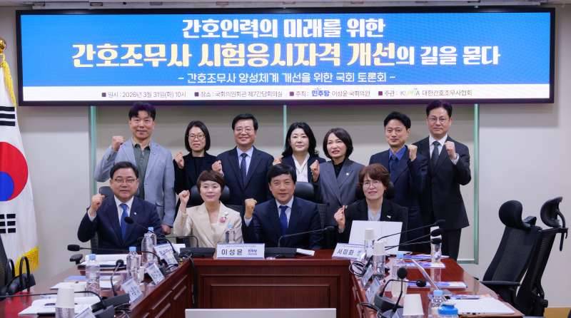´õºÒ¾î¹ÎÁÖ´ç À̼ºÀ± ±¹È¸ÀÇ¿ø(ÀüºÏ ÀüÁÖ½ÃÀ»)ÀÌ ÁÖÃÖÇÏ°í ´ëÇѰ£È£Á¶¹«»çÇùȸ(ÇùȸÀå °ûÁö¿¬)°¡ ÁÖ°üÇÑ ¡®°£È£ÀηÂÀÇ ¹Ì·¡¸¦ À§ÇÑ °£È£Á¶¹«»ç ½ÃÇèÀÀ½ÃÀÚ°Ý °³¼±ÀÇ ±æÀ» ¹¯´Ù¡¯ Åä·Ðȸ°¡ 3¿ù 31ÀÏ ±¹È¸ÀÇ¿øÈ¸°ü Á¦7°£´ãȸ½Ç¿¡¼ °³ÃֵƴÙ.