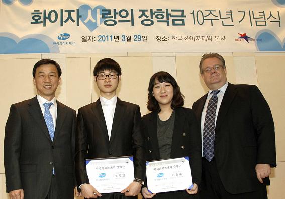 <»çÁø¼³¸í> ¡®ÈÀÌÀÚ »ç¶ûÀÇ ÀåÇбݡ¯ ±â³ä½Ä¿¡¼ À̵¿¼ö Çѱ¹ÈÀÌÀÚÁ¦¾à ´ëÇ¥ÀÌ»ç »çÀå°ú Á¦ÇÁ¸® Á¸½º ¹Ì·¡Àǵ¿¹ÝÀÚÀç´Ü ÀÌ»çÀåÀÌ ÀåÇлý ´ëÇ¥µé¿¡°Ô ÀåÇÐÁõ¼¸¦ ¼ö¿©ÇÏ°í ±â³äÃÔ¿µÀ» Çϰí ÀÖ´Ù. (¿ÞÂʺÎÅÍ À̵¿¼ö Çѱ¹ÈÀÌÀÚÁ¦¾à ´ëÇ¥ÀÌ»ç »çÀå, °í·Á´ë ÀÇÇаú Á¤¼º¹Î±º, °æÈñ´ë ¾ð·ÐÁ¤º¸ÇкΠ¼ÀºÇý¾ç, Á¦ÇÁ¸® Á¸½º ¹Ì·¡Àǵ¿¹ÝÀÚÀç´Ü ÀÌ»çÀå.)
