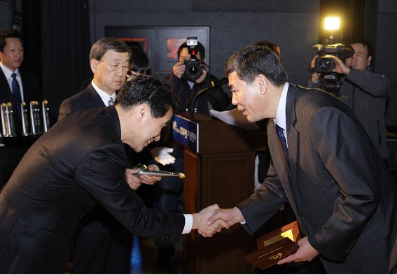 <»çÁø¼³¸í> ÀÌÁÖÈ£ ±³À°°úÇбâ¼úºÎ Àå°ü°ú ¹Ú¿ëÇö Çѱ¹»ê¾÷±â¼úÁøÈïÇùȸÀå(µÎ»ê±×·ì ȸÀå)ÀÌ À̰ü¼ø Çѹ̾àǰ »çÀå¿¡°Ô »óÆÐ¸¦ Àü´ÞÇϰí ÀÖ´Ù.