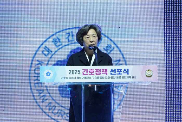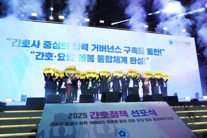 ½Å ȸÀåÀº ¡°À̹ø °£È£Á¤Ã¥ ¼±Æ÷½ÄÀº °£È£°è¸¸ÀÇ Çà»ç°¡ ¾Æ´Ï¶ó ´ëÇѹα¹ÀÇ Áö¼Ó°¡´ÉÇÑ µ¹º½ ¹Ì·¡¸¦ ÇÔ²² ¸¸µé¾î°¡´Â Ãâ¹ßÁ¡¡±À̶ó¸ç ¡°°£È£°è´Â Á¤ºÎ¡¤±¹È¸¡¤ÁöÀÚü¡¤ÀǷᡤ¿ä¾ç±â°ü°ú Çù·ÂÇØ ´ëÇѹα¹Çü ÅëÇÕ µ¹º½ ¸ðµ¨À» ½ÇÇöÇØ ³ª°¡°Ú´Ù¡±°í ¸»Çß´Ù.
